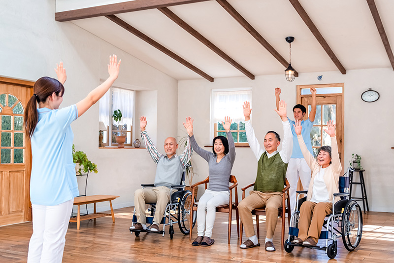 また、介護事業では、福祉施設と連携し、高齢者の皆さまが心身ともに健康で充実した日々を送れるよう、運動やレクリエーションを提供しています。社会的なつながりを深める機会を創出し、高齢者の方々のQOL(生活の質)の向上に貢献しています。